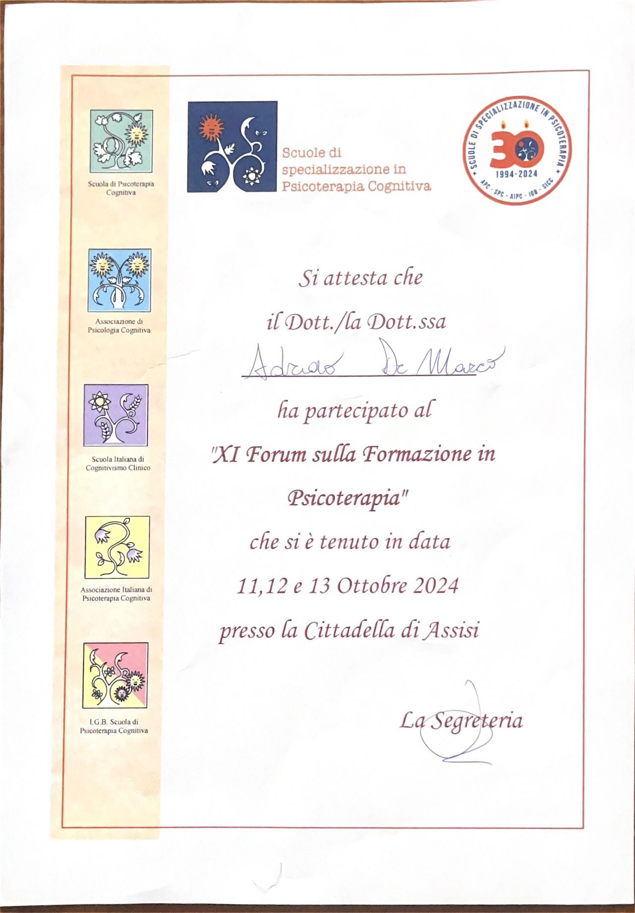 Sono laureato in Neuroscienze Cognitive e Riabilitazione Psicologica presso l'università la Sapienza, iscritto all'albo degli psicologi del Lazio con il numero 28627 e mi sto specializzando presso la Scuola Italiana di Cognitivismo Clinico, al fine di diventare psicoterapeuta.