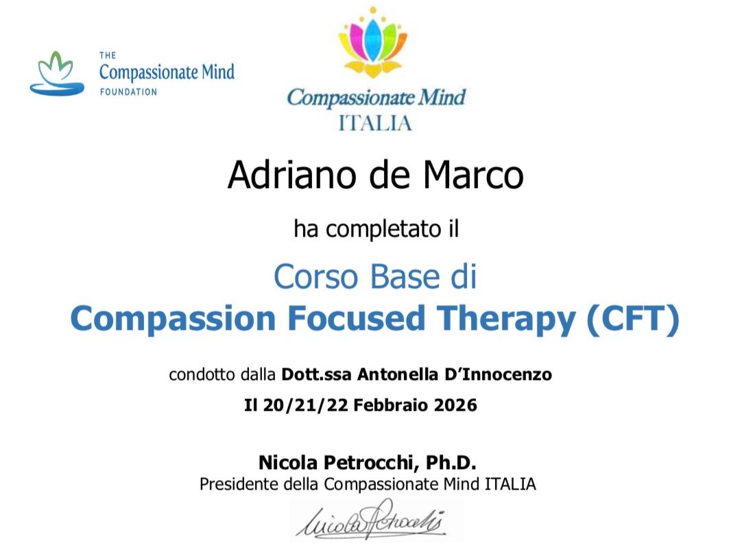 "Consiglio vivamente il Dott. Adriano De Marco: un professionista di estrema sensibilità e capacità di ascolto. Mi ha fatto sentire a mio agio fin da subito, aiutandomi a fare chiarezza con un approccio autentico e mai giudicante• Studio di psicoterapia via Cremona 21 • psicoterapia •