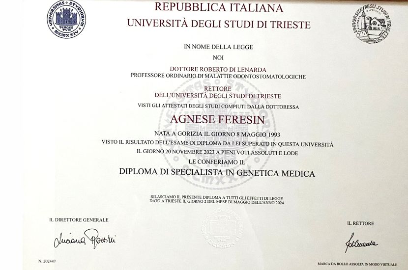 Siamo estremamente grati alla dott.ssa Feresin per la sua professionalità, competenza e umanità. Fin dal primo contatto si è dimostrata presente, disponibile e velocissima nel rispondere a qualsiasi dubbio: qualità rare e preziose in un ambito delicato come quello della genetica.