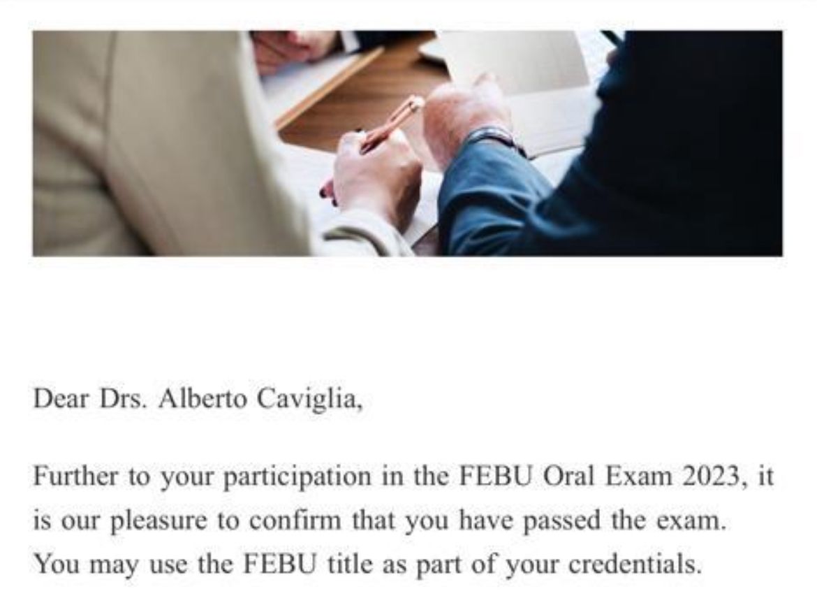 Nel giugno 2023 ho anche acquisito il titolo di Fellow of the European Board of Urology, un riconoscimento europeo di ottime conoscenze clinico-di agnostiche in ambito urologico