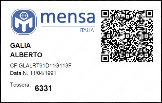 • Dal 2022 faccio parte del Mensa (n° 6331), partecipando alla pubblicazione di articoli per la rivista Quid.