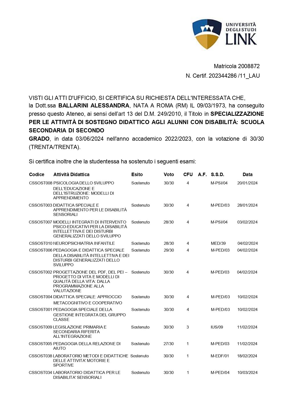 Hai avuto una visita con Dott.ssa Alessandra Ballarini? Condividi quello che pensi. Grazie alla tua esperienza gli altri pazienti potranno scegliere il miglior dottore per loro.