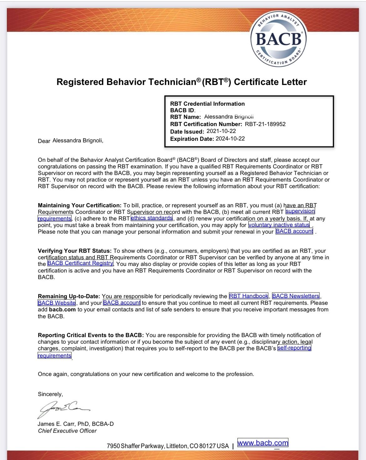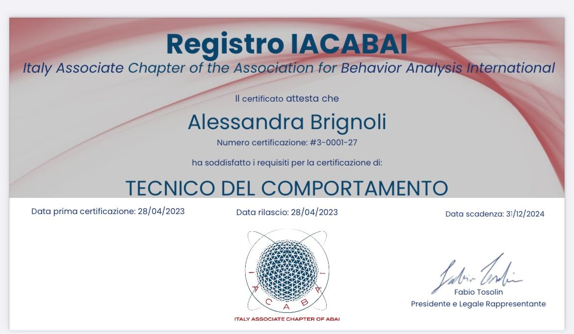 Sono una Psicologa Clinica, iscritta all’Albo A dell’Ordine degli Psicologi della Lombardia n 28992 e attualmente Analista del Comportamento in Formazione presso IESCUM. Con una solida esperienza nel settore educativo e nella formazione , ho lavorato prima come educatrice con bambini con disturbi del neurosviluppo, poi come terapista prima come RbT ( credenziale del Board ) e poi come TdC: implementando interventi analitico comportamentali supervisionata da Analisti del Comportamento ). Ora come Analista del Comportamento in formazione il mio lavoro include la valutazione, la progettazione di interventi, la supervisione dell'implementazione e la valutazione dei risultati, supervisionata da Analisti Del Comportamento. Gli interventi sono sia per bambini che per giovani adulti, volti a migliorare la qualità di vita dei bambini , dei ragazzi e dei loro famigliari.