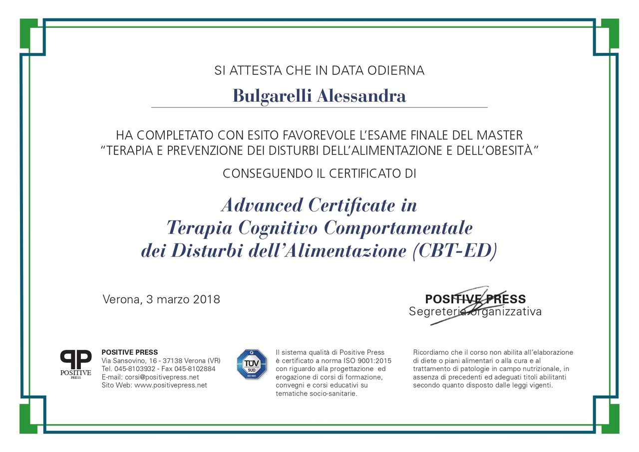 Sono specializzata in Disturbi dell'Alimentazione e della nutrizione (protocollo CBT-E) e sono responsabile dell'unità operativa locale AIDAP (Associazione Italiana Disturbi dell'Alimentazione e del Peso) di Carpi.
