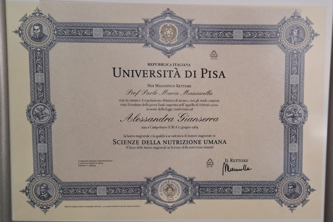 Raccomando la dottoressa Alessandra Gianserra a chiunque stia cercando un'esperta in nutrizione a Pisa. Dalla mia prima visita, la dottoressa ha mostrato un'incredibile attenzione alle mie esigenze alimentari, accompagnata da una scrupolosità e professionalità che raramente si trovano. Il suo approccio personalizzato mi ha aiutato a riequilibrare la mia alimentazione in modo efficace, migliorando significativamente la mia salute e il mio benessere quotidiano. Oltre alla sua competenza, ciò che veramente la distingue è la sua capacità di creare un ambiente accogliente e rassicurante, facendomi sentire sempre a mio agio .