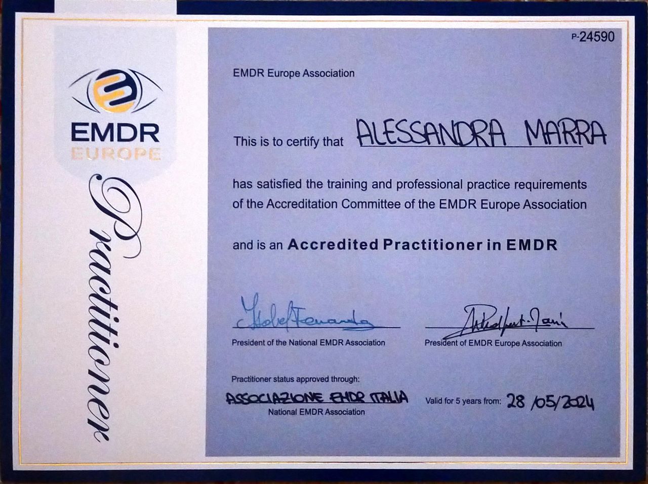 Sono laureata in Psicologia e mi sono specializzata in terapia della famiglia, di coppia e delle relazioni, seguendo il modello sistemico-relazionale. Sono terapeuta esperta in EMDR, una tecnica utilizzata per il trattamento dei disturbi post-traumatici, sia legati a grandi catastrofi ed eventi traumatici, sia a traumi di natura relazionale che si sviluppano nel corso della vita.