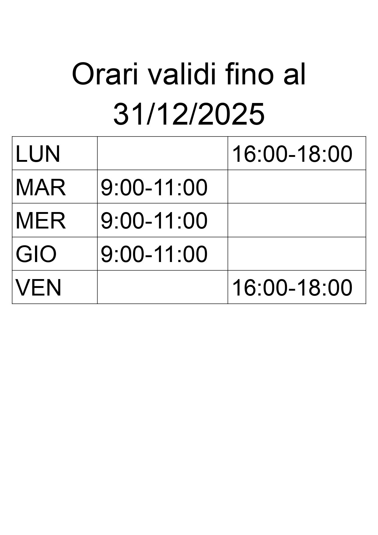 Da Lunedì al Venerdì dalle 9-12/15-18