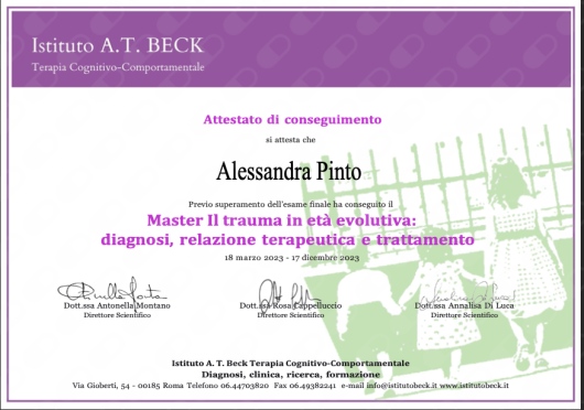 Sono Alessandra Pinto, Psicologa Clinica dello Sviluppo e Psicoterapeuta in formazione ad orientamento sistemico-relazionale.