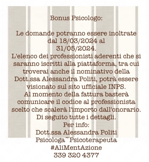 Dal 2022 aderisco al BONUS Psicologo (vedi info in dettaglio)