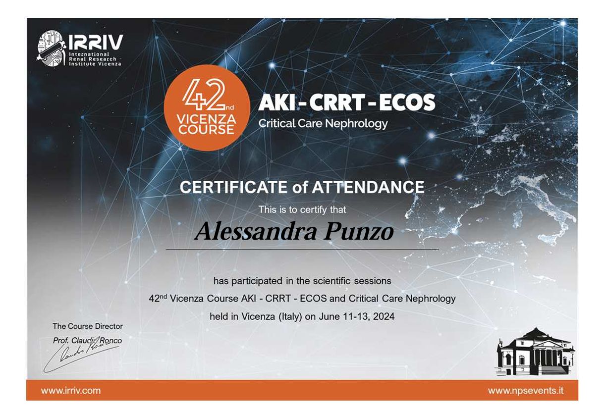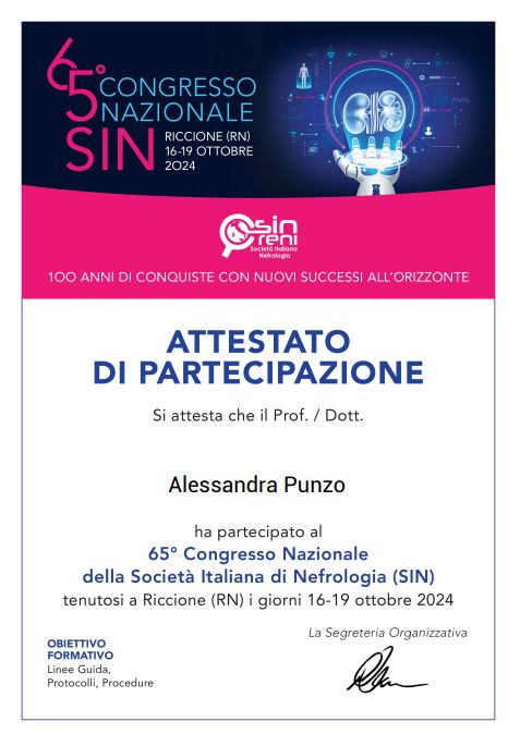 Specializzazione in Nefrologia presso l'Università degli Studi di Roma "La Sapienza".