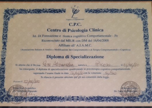 Psicologo clinico, psicoterapeuta cognitivo-comportamentale. Mi occupo di pre-adolescenti, adolescenti, adulti, coppie e famiglie. Svolgo attività di Consulente Tecnico di Parte in ambito sia civile che penale. Sono esperta in valutazioni delle competenze genitoriali e nella gestione della crisi coniugali con particolare riferimento ai rapporti tra genitori e figli. Mi occupo di psicotraumatologia ( EMDR I LIVELLO) e svolgo attività di consulenza presso l'associazione " Nessuno Tocchi i Papà". Sono psicodiagnosta con pluriennale esperienza nella somministrazione del test proiettivo di Rorschach( Scuola Romana Rorschach) ed eseguo tecniche di rilassamento per la gestione dello stress. Ho svolto attività di formatore presso strutture pubbliche e private. Svolgo attività di psicoterapeuta presso il Centro Clinico " Il Piccolo Principe" di Pescara e sono componente esperto ( giudice onorario) presso il Tribunale di Sorveglianza di l'Aquila. Esperta in Tecniche di negoziazione nelle situazioni di Crisi e Tecniche d'interrogatorio e rilevazione della menzogna.