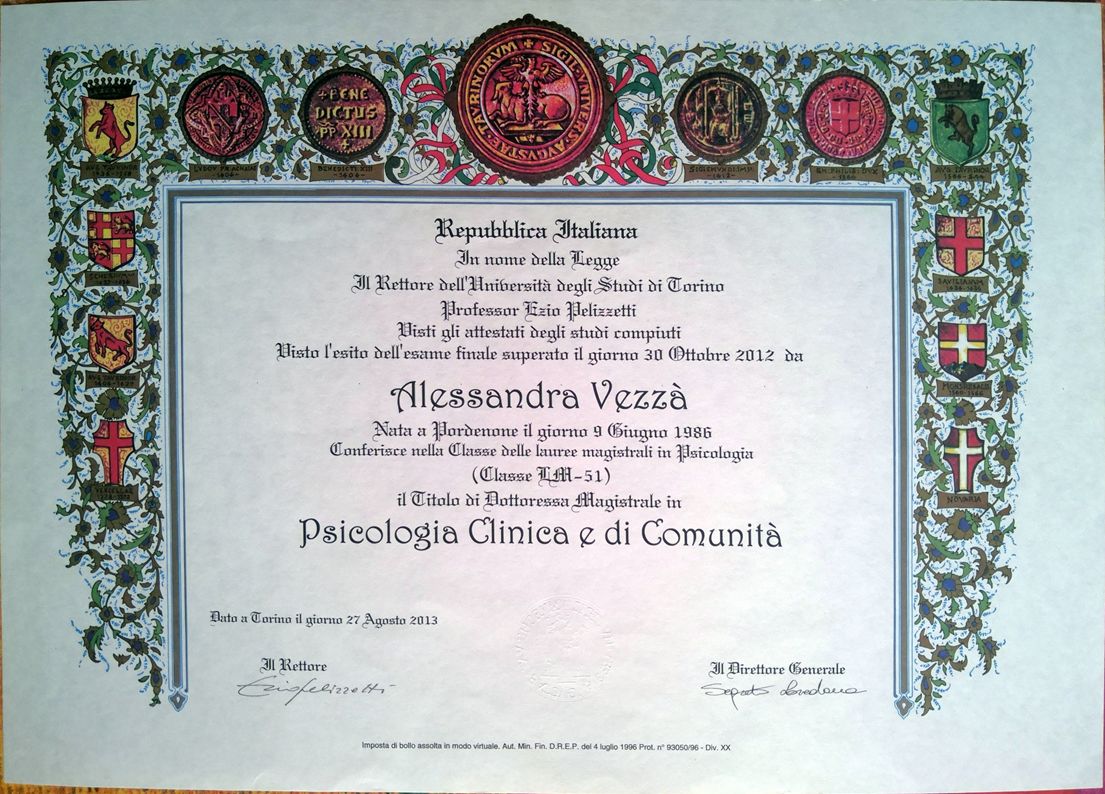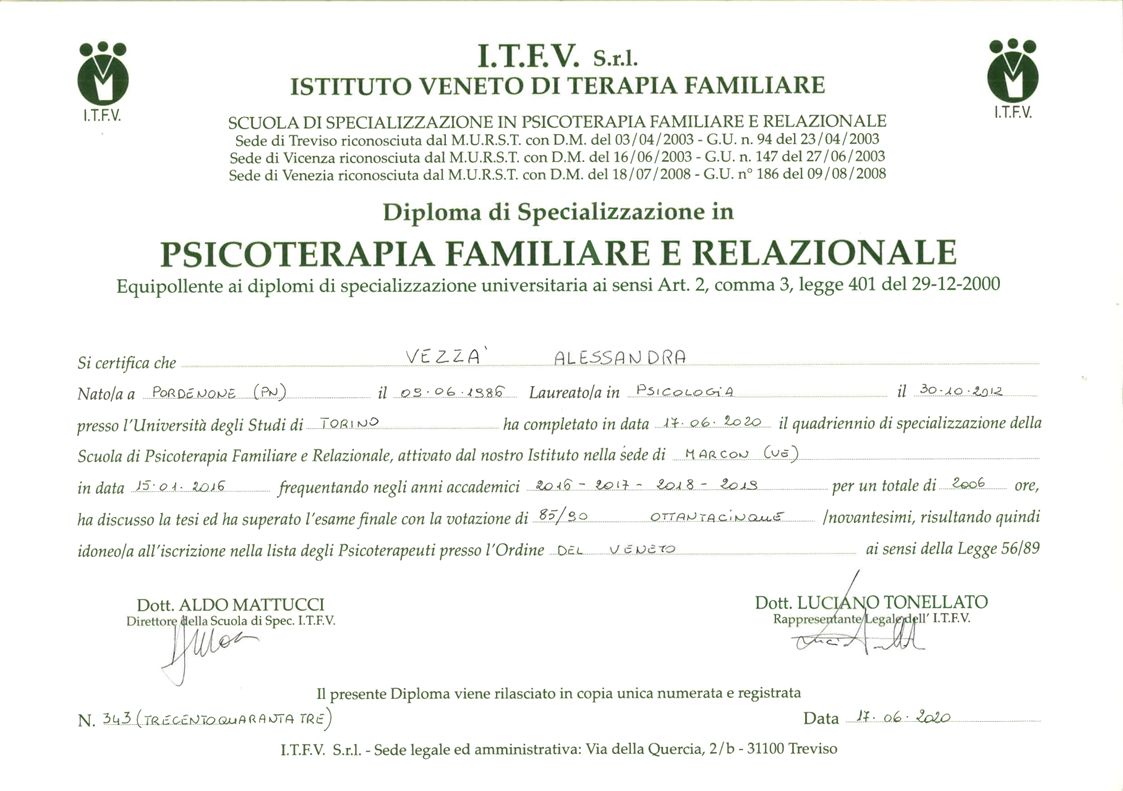 Dopo la laurea triennale in Scienze e Tecniche Psicologiche presso l’Università degli Studi di Trieste conseguo la laurea magistrale in Psicologia Clinica e di Comunità presso l’Università degli Studi di Torino. Qui mi avvicino e mi appassiono all’approccio relazionale. Decido quindi di specializzarmi in psicoterapia ad orientamento sistemi familiare presso l’Istituto Veneto di Terapia Familiare.