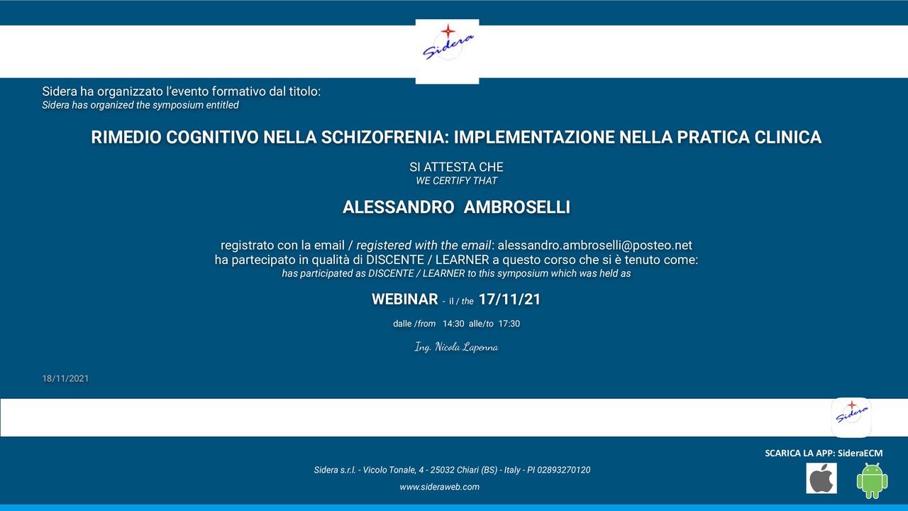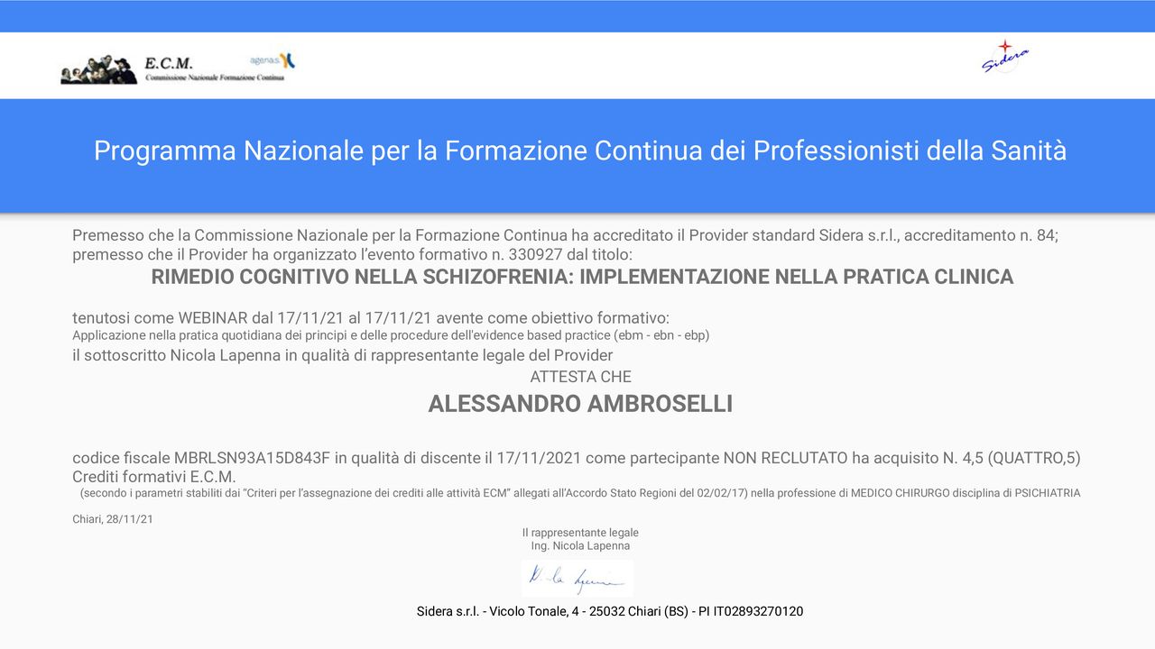 Chi ha il problema dell'insonnia può capirmi, talvolta è veramente difficile affrontare la quotidianità. Il dott. Ambroselli ha individuato una terapia efficace nel lungo termine e adatta alle mie esigenze. Disponibile ed empatico, mi ha messo subito a mio agio, proponendosi con professionalità e chiarezza. Grazie.