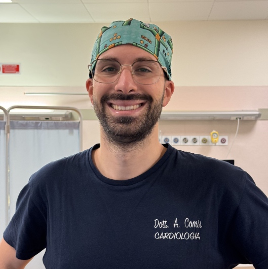 Mi chiamo Alessandro Comis, ho conseguito la laurea in Medicina e Chirurgia presso l'università di Catania con voti 110/110 e lode. Nel 2025 ho conseguito la specializzazione in Cardiologia sempre presso l'Università di Catania con voti 70/70 e lode. Lavoro dal 2025 come Dirigente Medico presso il Centro Cuore Morgagni (Pedara) dove mi occupo principalmente di cardiologia interventistica. Dal 2021 ricopro il ruolo di Docente a contratto in malattie dell'apparato cardiovascolare presso l' Accademia Italiana Medici Specializzandi. Sono autore e co-autore di numerosi articoli pubblicati su riviste internazionali ed indicizzate. Ho partecipato a numerosi congressi nazionali ed internazionali in qualità di discente e presentatore.