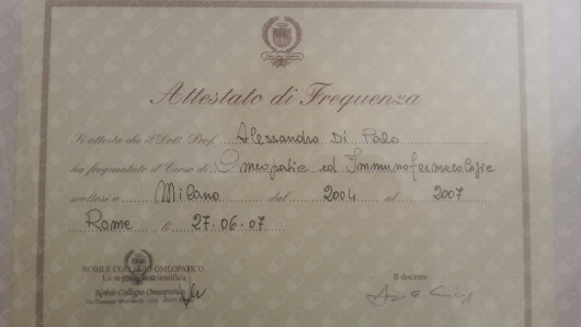 Al di là del conseguimento di alcuni diplomi in omeopatia e in immunofarmacologia clinica, il motivo per cui il Dr. Di Palo ha un approccio omeopatico è il risultato di un percorso vissuto con stima e spirito d’interscambio tra colleghi e ricercatori sinceri, nell’interesse comune per la ricerca e la valorizzazione della medicina convenzionale e non, per la tradizione ed il dovere di scientificità, per lo studio e le soddisfazioni terapeutiche.