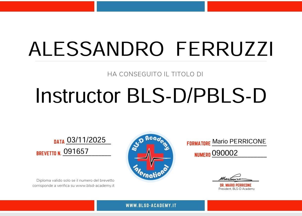 Sono istruttore certificato Pediatric Basic Life Support.