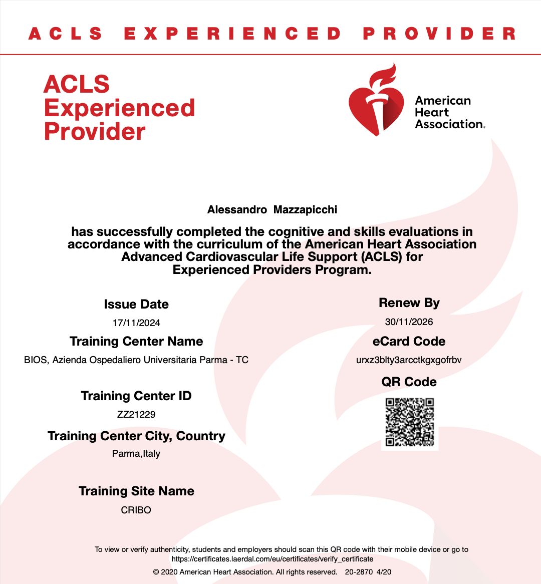 Ho inoltre approfondito con particolare interesse la diagnostica ecocardiografica, riconoscendone il ruolo essenziale nella valutazione integrata del paziente.