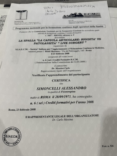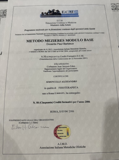 - Attestato Massaggio del Corpo, Linfodrenaggio Sapienza di Roma (1998)