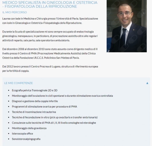 Dal 2012 lavoro presso il Centro Procrea di Lugano, struttura di riferimento europea per la fertilità di coppia.