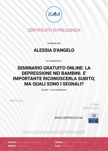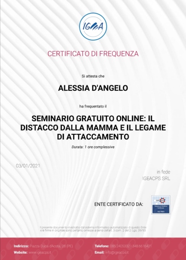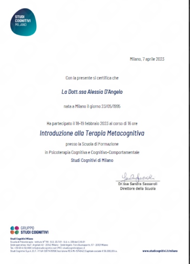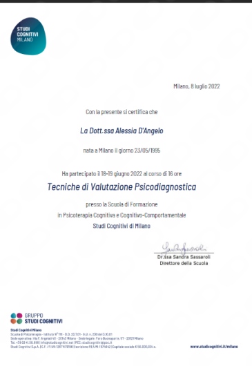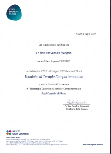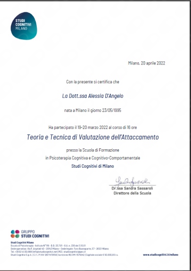 Rimango a sua disposizione Cordialmente Dott.ssa Alessia D'Angelo