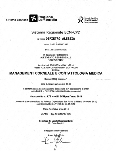 Ho effettuato una visita oculistica molto accurata e non posso che esprimere piena soddisfazione.