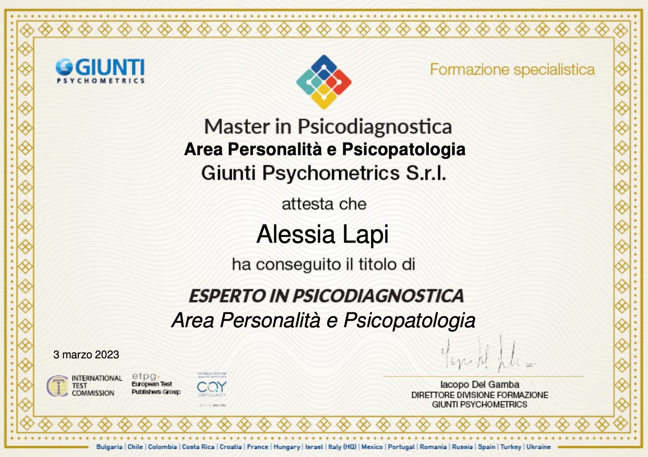 Ho avuto un’ottima esperienza durante la seduta. La Dottoressa Alessia mi ha messo subito a mio agio, creando un clima di ascolto e fiducia. È riuscita a guidarmi con domande mirate e osservazioni molto lucide, aiutandomi a vedere con più chiarezza alcune dinamiche personali. La consiglio a chi cerca un percorso serio, professionale e realmente orientato al benessere.