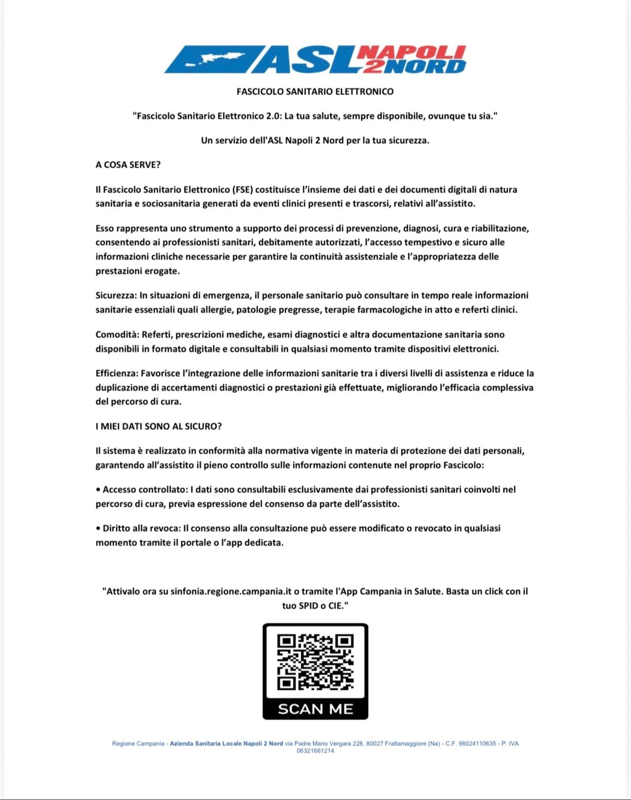 Importante: senza il tuo consenso, il FSE non è consultabile dai professionisti sanitari.