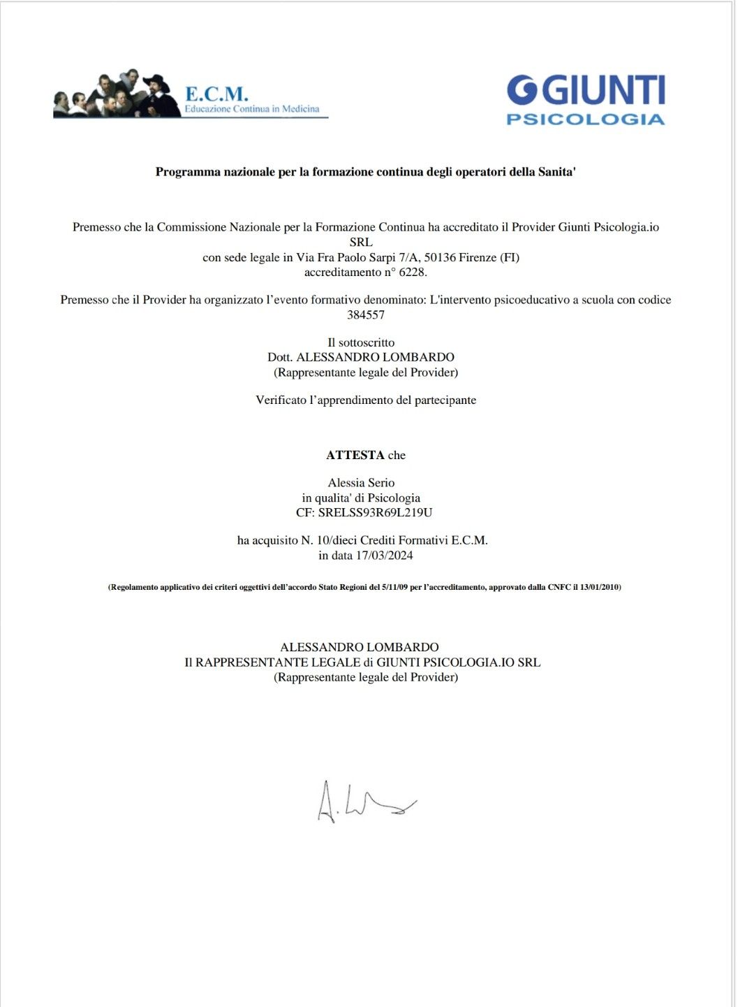 Hai avuto una visita con Dott.ssa Alessia Serio? Condividi quello che pensi. Grazie alla tua esperienza gli altri pazienti potranno scegliere il miglior dottore per loro.