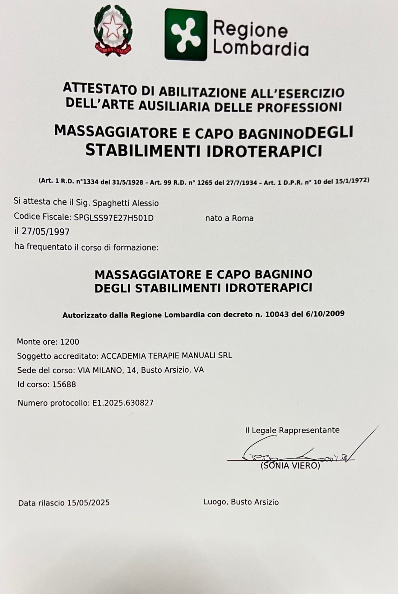 Il dottor Alessio Spaghetti è un osteopata molto competente e professionale. Dimostra grande attenzione, precisione e una notevole passione per il suo lavoro. Le sue spiegazioni sono sempre chiare e ogni trattamento risulta efficace grazie alla sua capacità di individuare rapidamente il problema. Consiglio vivamente il suo studio a chi cerca un professionista serio e preparato