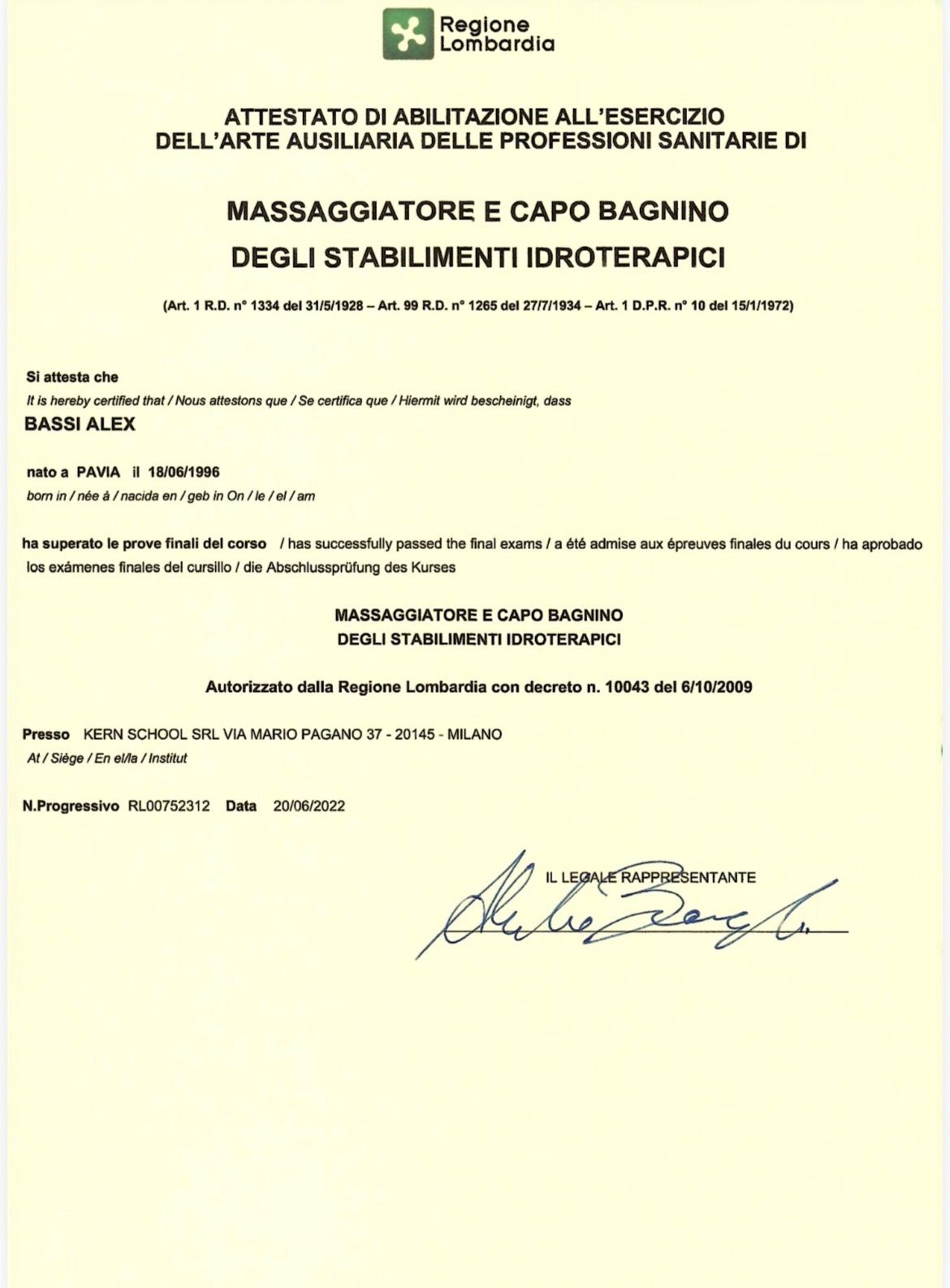 Sono un Massoterapista MCB, ho studiato presso la Kern School di Milano, mi sono diplomato nel 2022 ed ho iniziato subito a lavorare. Sono specializzato nel trattamento di sportivi e tuttora collaboro con il settore giovanile dell’U.S. Cremonese, società professionistica di Calcio.