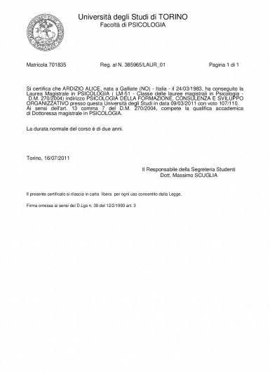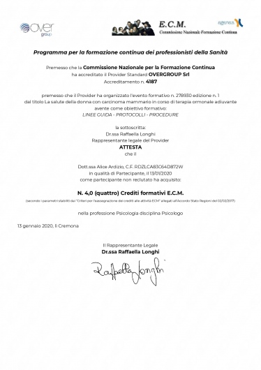 Mi sono laureata in Psicologia presso l'Università di Torino e specializzata in Ipnosi Medica Rapida.