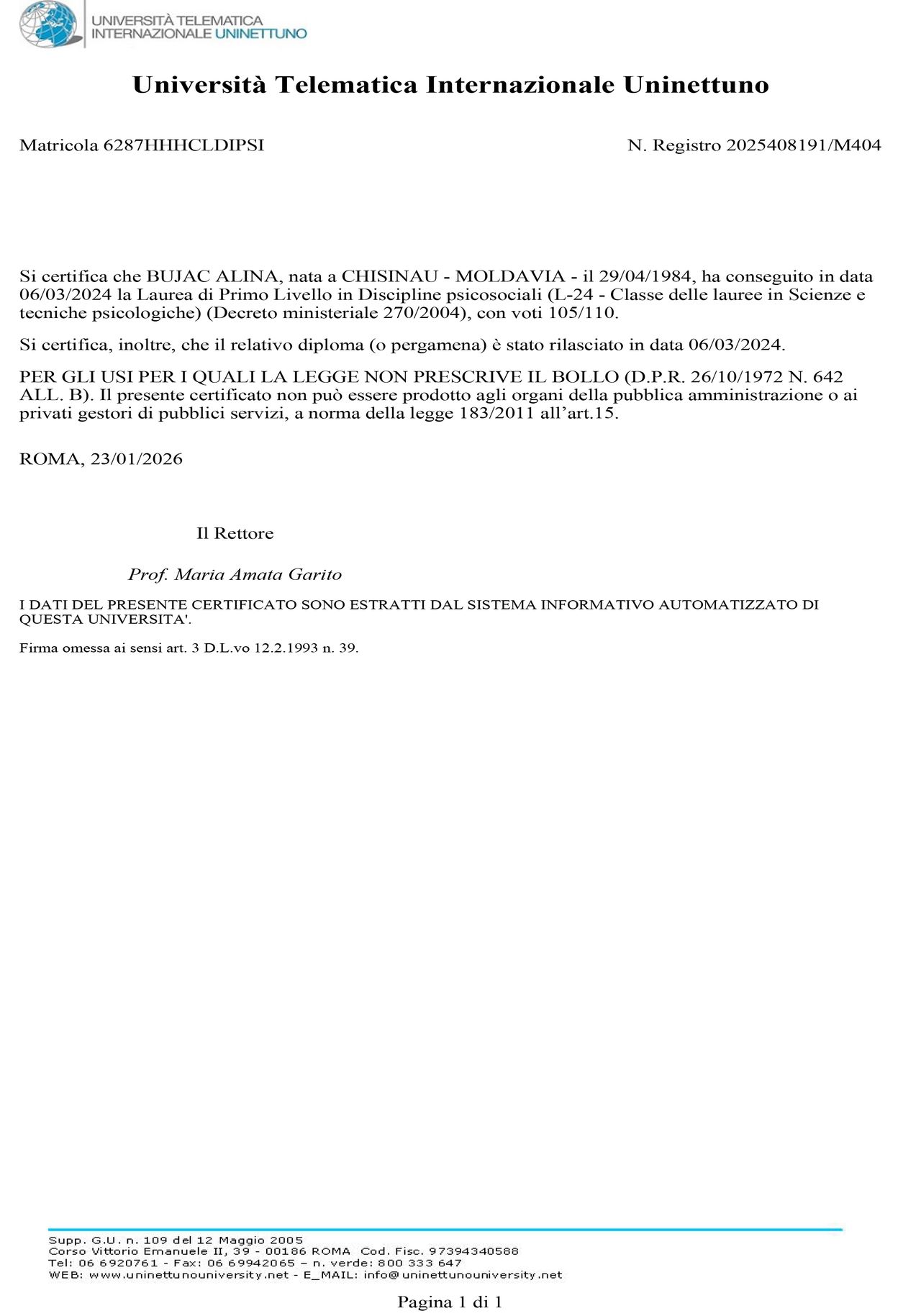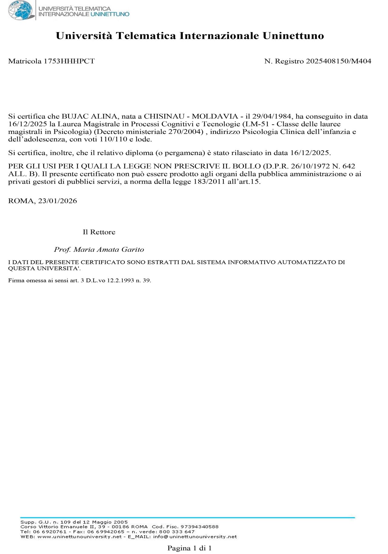 Sono la dottoressa Alina Bujac, ai miei studi universitari in psicologia clinica, seguono i master post laurea in abito della Sessuologia clinica e sui Traumi semplici e complessi. Di rilievo i miei studi in Svizzera sulle dinamiche e le proiezioni inconsce, comprendenti anche le specifiche oniriche.