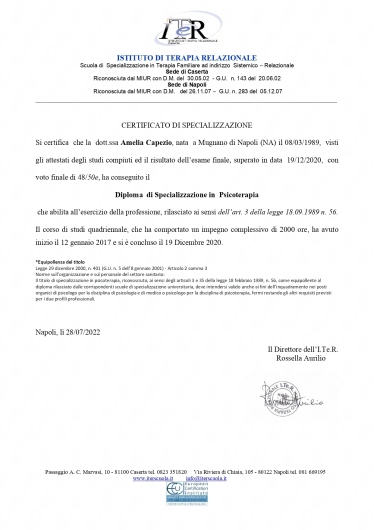 Sono realmente soddisfatto della visita, consigliata vivamente.• Consulenza online dottoressa Amelia Capezio • psicoterapia della dipendenza affettiva •