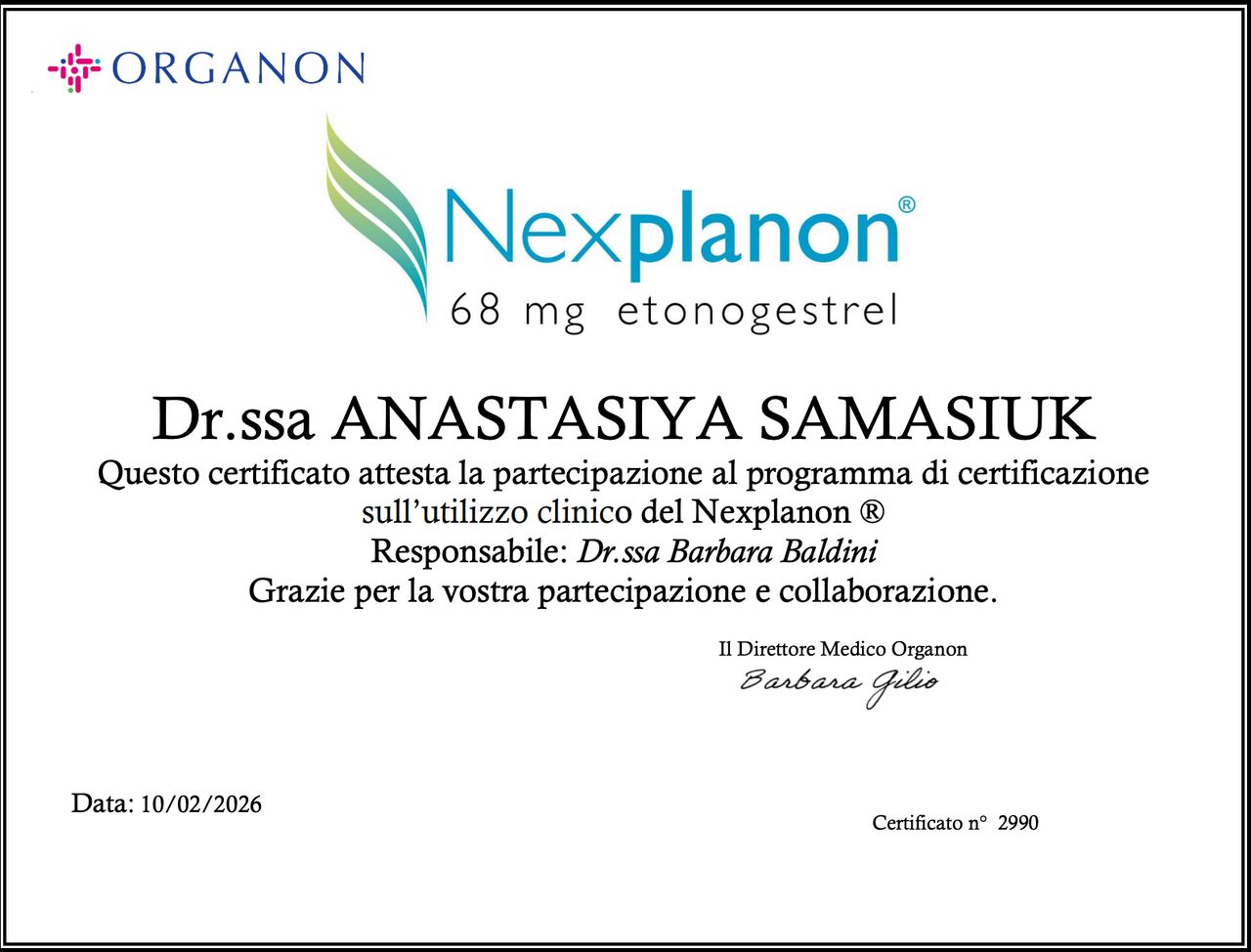 Sono la Dott.ssa Anastasiya Samasiuk, specialista in Ginecologia e Ostetricia.