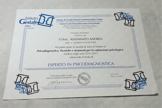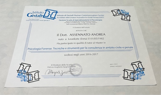 Ho svolto il ruolo di Tutor presso i corsi specialistici in Psico-diagnosi e Psicologia giuridico-forense promossi dall'Istituto Gestalt HCC Italy.