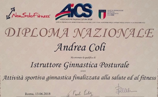 Nel 2018 consegue la qualifica di Istruttore di Ginnastica Posturale presso NonSoloFitness-AICS