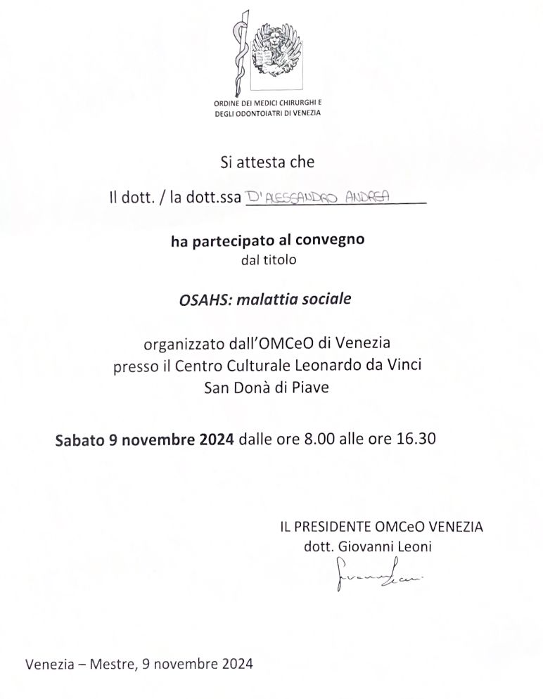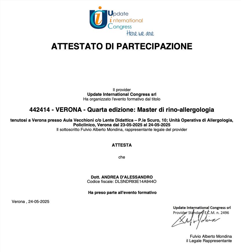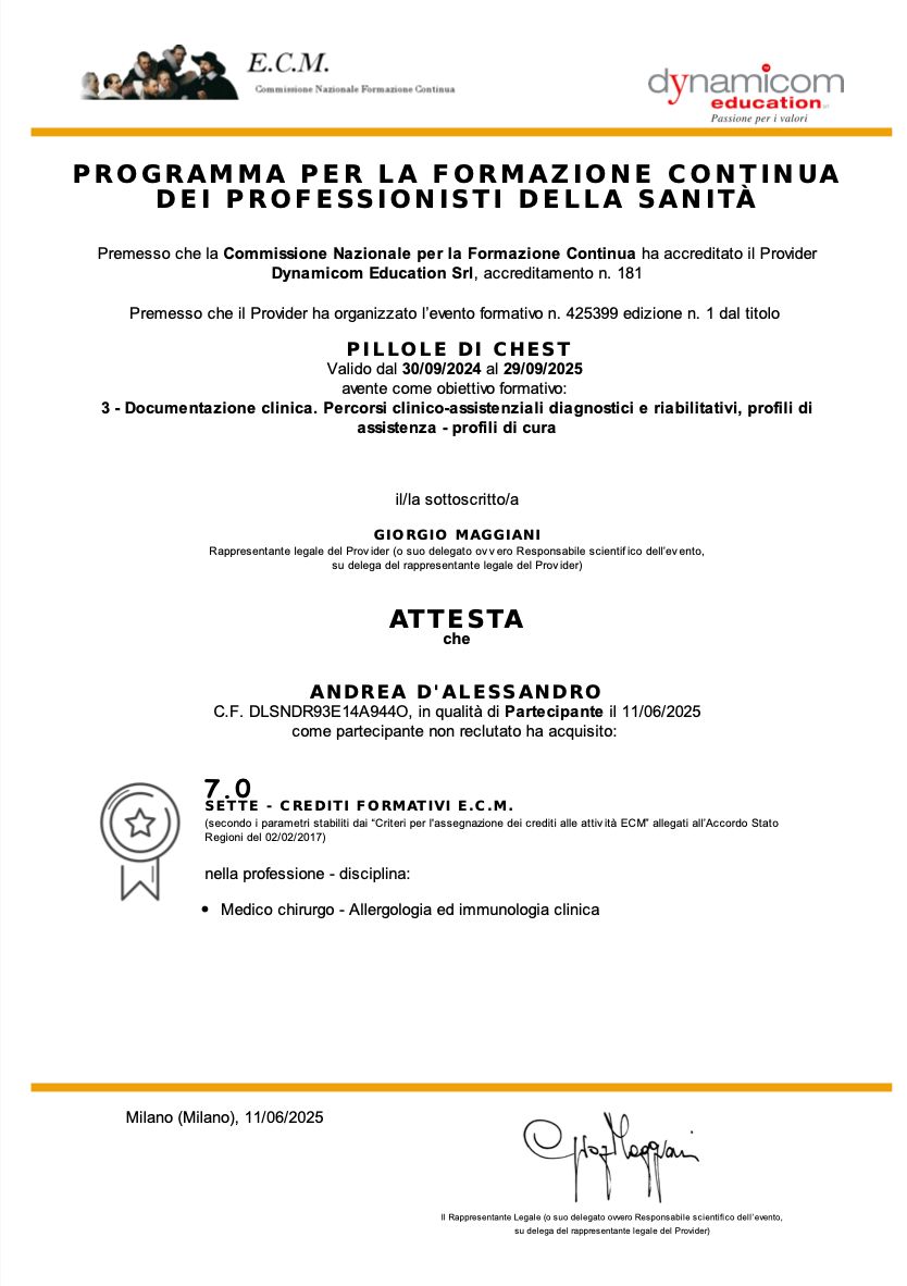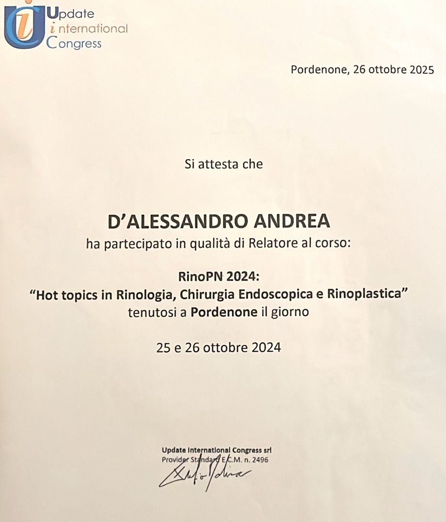 Ringrazio il dottore per l'urgenza che ha avuto in quanto la malattia "grave" poteva generare danni non guaribili. Grazie ancora al dott. D'ALESSANDRO.