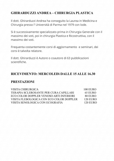 Il dott. Ghirarduzzi Andrea ha conseguito la Laurea in Medicina e Chirurgia presso l’ Università di Parma nel 1979 con lode.