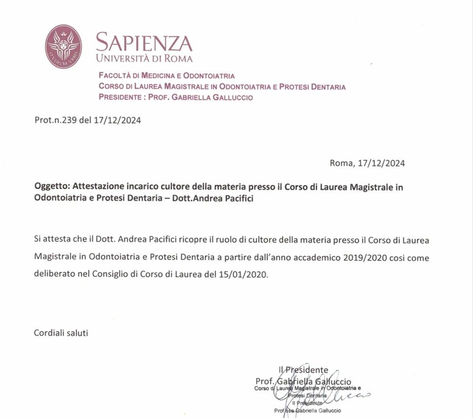 Dottore di Ricerca in MALATTIE DELLO SCHELETRO E DEL DISTRETTO OROCRANIO-FACCIALE, presso Sapienza Università di Roma; con lode.