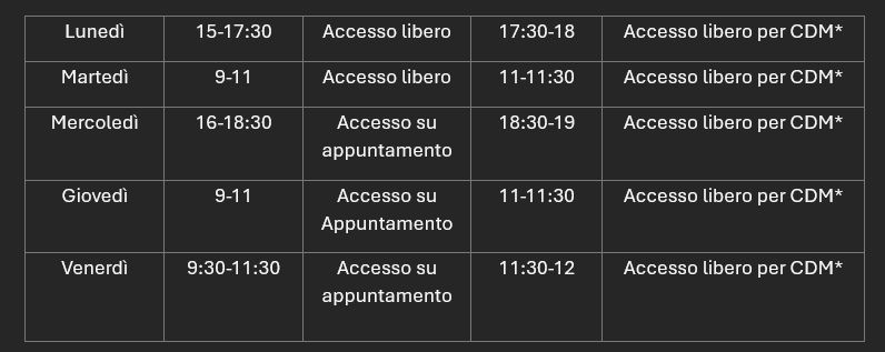 Per i CDM è necessario presentarsi in ambulatorio nelle fasce orarie specificate ad accesso libero