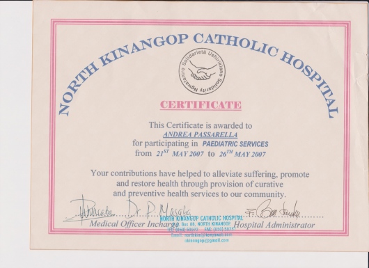 Attività di assistenza clinica e formazione c/o North Kinangop Catholic Hospital, North Kinangop Nhyahururu District Kenya, Ol MOran Catholic Despensary, Nyahururu District Kenya, Wassarà Health Center Wassarà Ethiopia, Centre de Santè de Bwoga-Gitega Burundi.