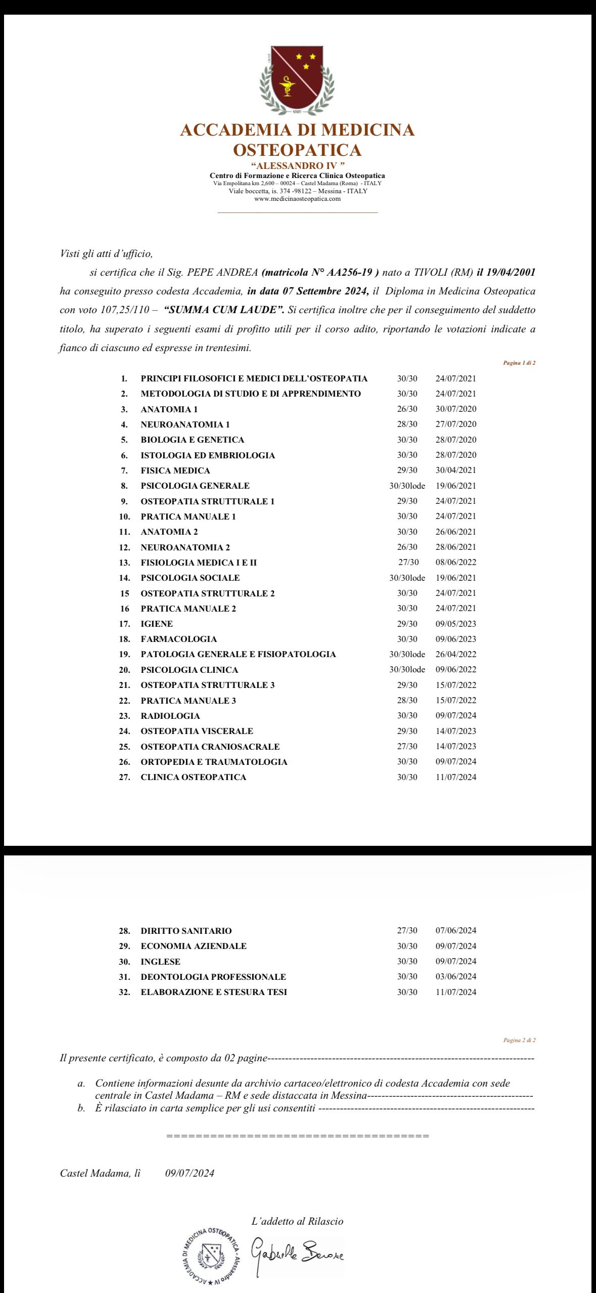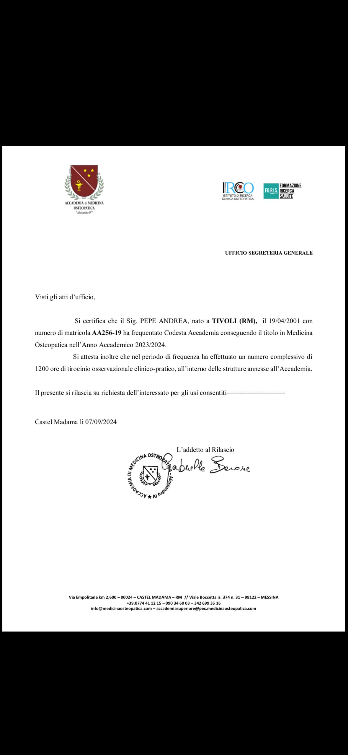 Svolgo questa professione con passione e dedizione, convinto che l’osteopatia rappresenti uno strumento fondamentale per migliorare la qualità della vita delle persone.