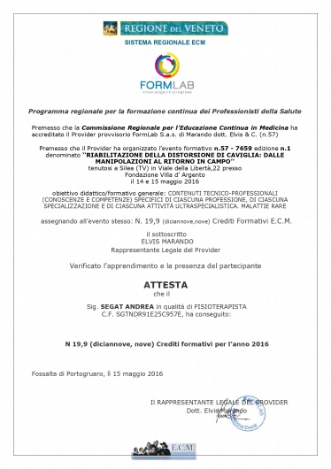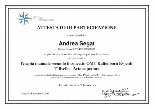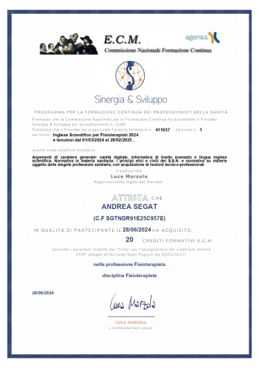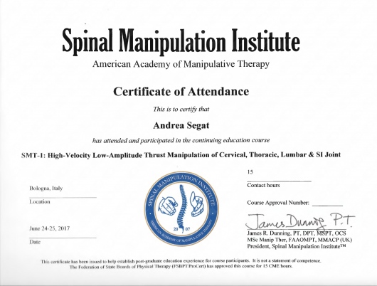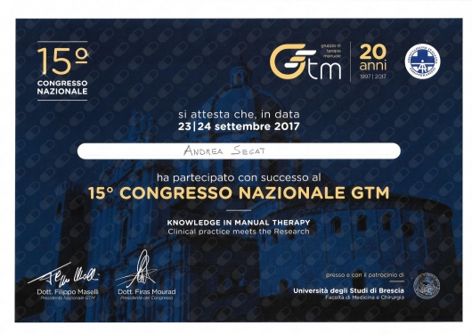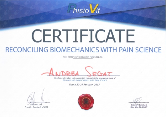 Negli anni ho frequentato svariati corsi di specializzazione in ambito muscoloscheletrico, alcuni con docenti internazionali.