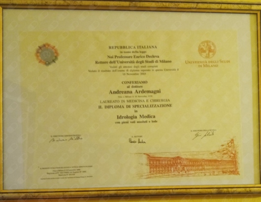 • Laurea in Medicina e Chirurgia presso Università degli Studi di Milano in data 19/03/96