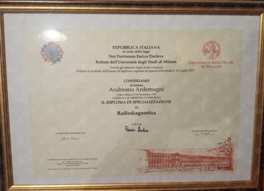 • Specializzazione in Medicina Nucleare presso Università degli Studi di Milano in data 09/11/00