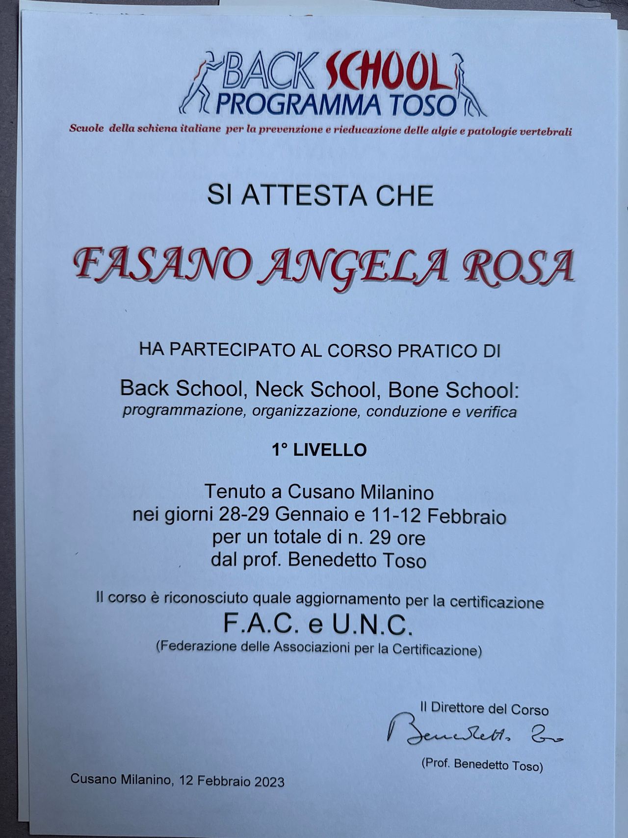 Ho consultato la dott.ssa Fasano sia in veste da Personal Trainer che per svariati problemi fisici, ed in entrambi i casi si è dimostrata molto competente facendo raggiungere ottimi risultati e risolvendo velocemente varie problematiche fisiche.