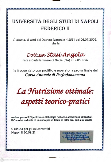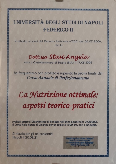 Professionalità, competenza ed empatia straordinarie : Rivolgersi alla Dottoressa Angela Stasi è stata una delle migliori decisioni prese per la mia salute. Fin dal primo incontro, ciò che colpisce è la sua straordinaria capacità di ascolto: non si limita a prescrivere una dieta, ma cerca di comprendere a fondo lo stile di vita e le esigenze personali dei suoi pazienti.