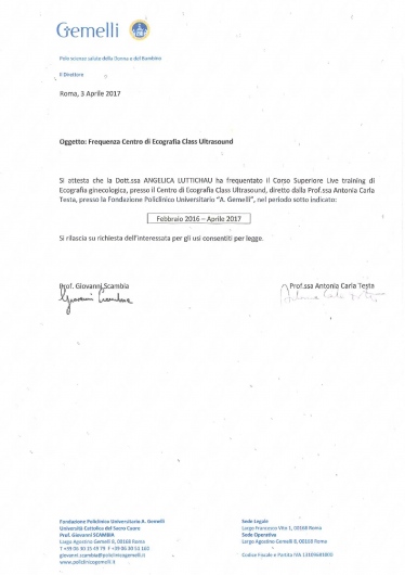 Professionale, meticolosa e precisa durante l'ecografia. Mi ha dato una spiegazione assolutamente comprensibile prospettandomi le diverse possibilità diagnostiche con serenità e senza allarmismi.
