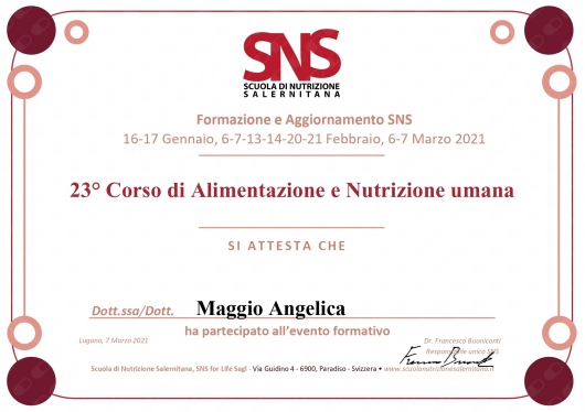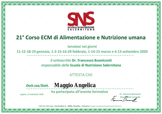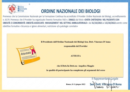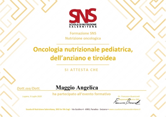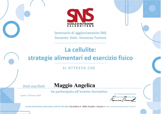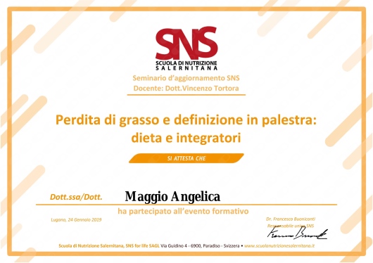 Felicissima di essermi affidata a lei, sono certa di ottenere grandi risultati. La consiglio vivamente.• Dott.ssa Angelica Maggio • prima visita nutrizionale •