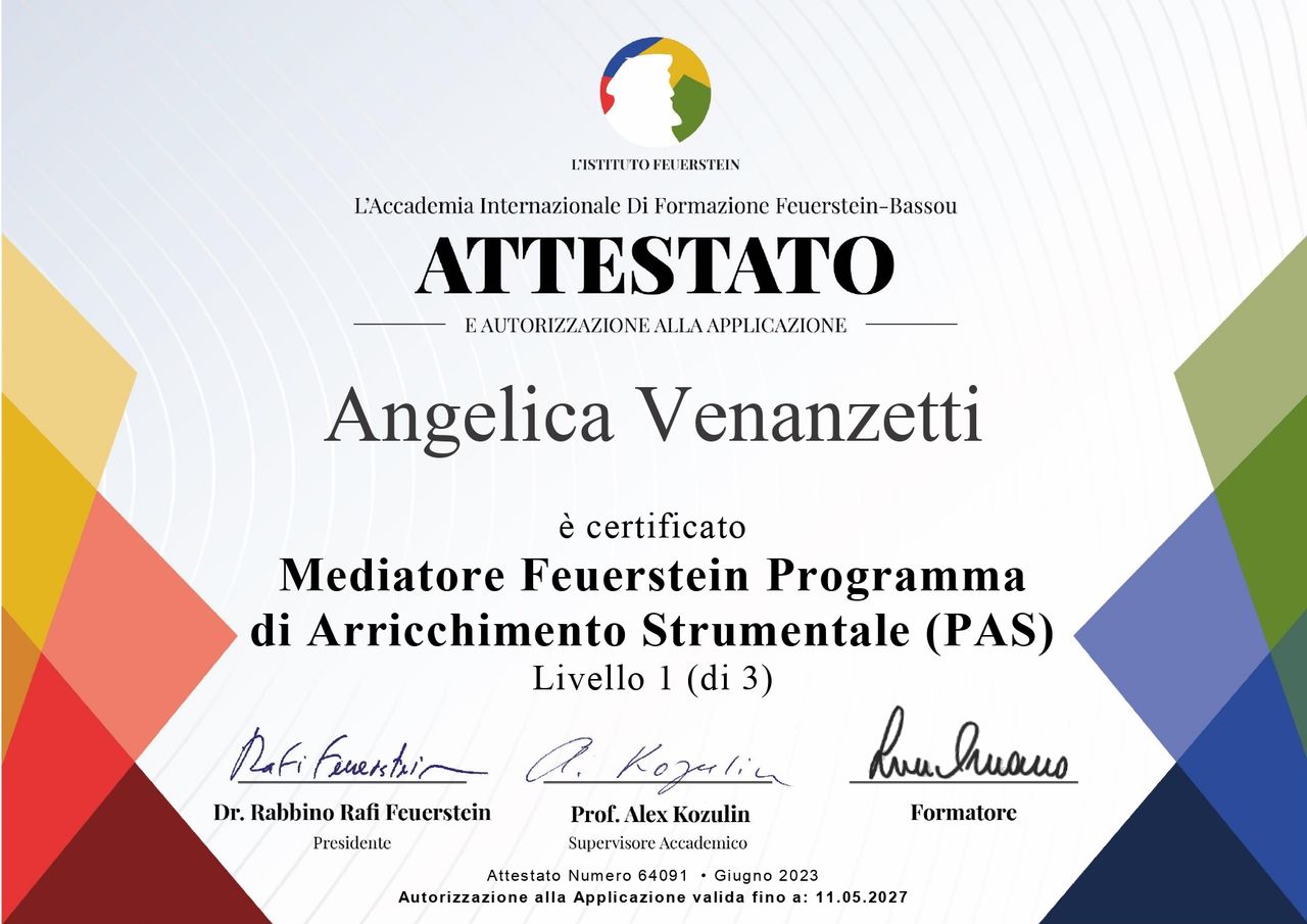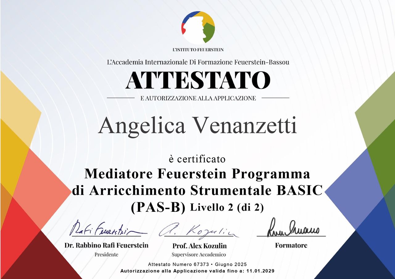 Sono la dottoressa Angelica Venanzetti, psicologa di area neuropsicologica e dell'età evolutiva.